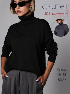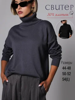 Свитер с горлом оверсайз тонкий из хлопка