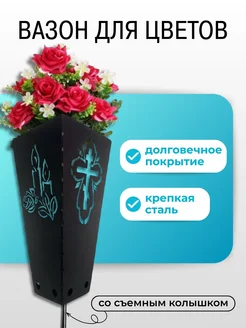 Вазон для цветов на кладбище с колышком Ваза ритуальная