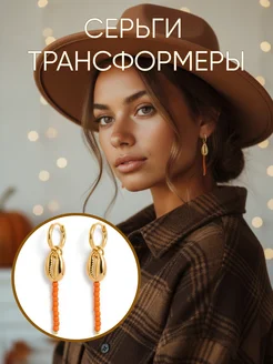 Серьги конго сердечки трансформеры в подарок бижутерия