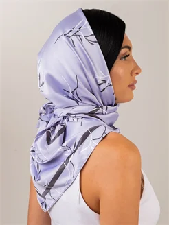 Платок косынка на голову и шею шелковый атласный