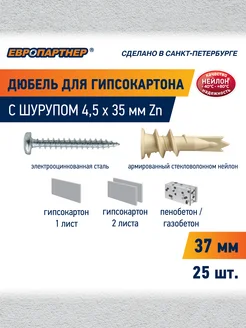 Дюбель для гипсокартона Дрива с шурупом 25шт