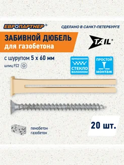 Дюбель для газобетона TAIL забивной c шурупом 5x60мм 20 шт