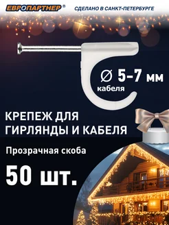 Крепеж для гирлянды и кабеля прозрачный 5-7мм(50шт.)