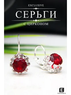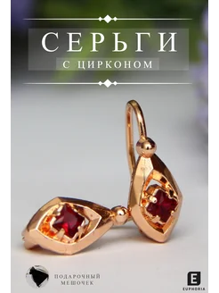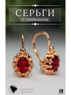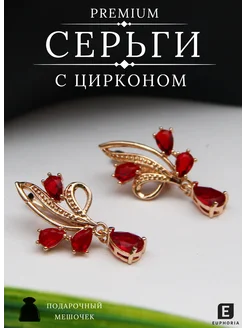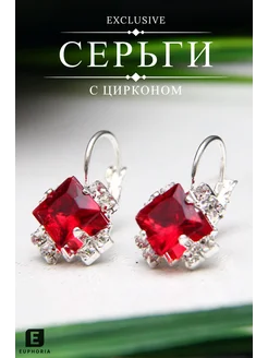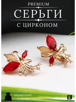 Серьги бижутерия с цирконом красные