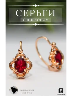 Серьги бижутерия с красным камнем