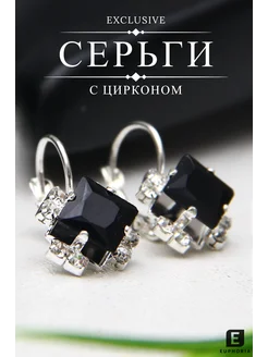 Серьги бижутерия с черным камнем
