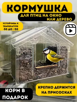 Кормушка оконная домик корм для птиц на присосках