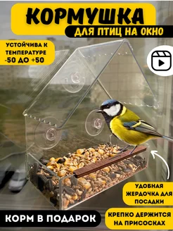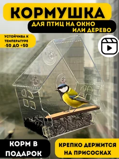Кормушка прозрачная на окно присосках корм для уличных птиц