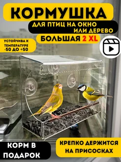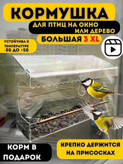 Большая кормушка для уличных птиц на окно 3 XXL