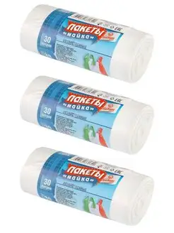 Мусорные пакеты с завязки 60 л 3 рулона по 10 шт 20 мкм