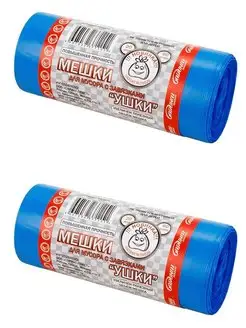 Мусорные пакеты 60л "УШКИ" 2 по 20 шт 19 мкм