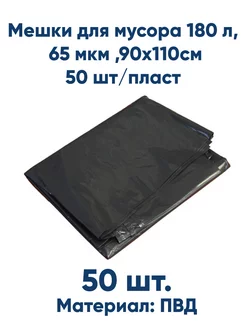 Мешки для мусора 180 л, ПВД 65 мкм, 50 шт пласт, 90х110см