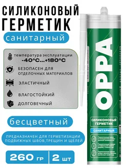 Герметик силиконовый санитарный бесцветный ОППА, 2 шт