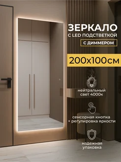 Зеркало с подсветкой настенное 200x100 в полный рост
