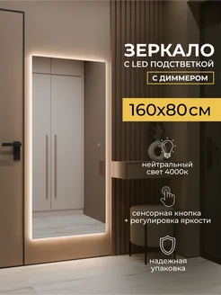 Зеркало с подсветкой настенное 160x80 в полный рост
