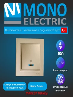 Выключатель 1 кл. с подсветкой DESPINA Титан