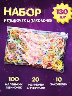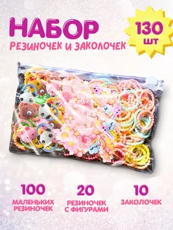 Набор маленьких резиночек и заколочек для девочек 130 шт