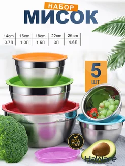 Набор мисок с крышками из нержавеющей стали 5 шт