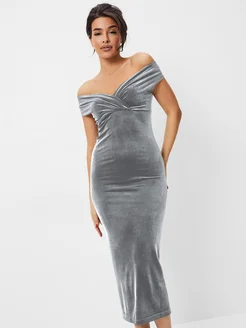 Свадебное вечернее трикотажное платье с пышными рукавами