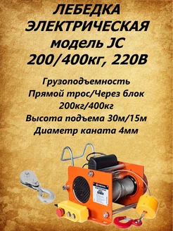Лебедка электрическая 200 400кг, трос 30м, 220В