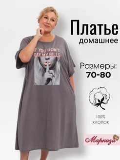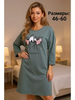 Платье трикотажное домашнее большие размеры туника длинная