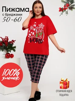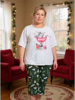 Домашний костюм с бриджами пижама большие размеры новогодняя