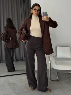 Теплые брюки палаццо на резинке