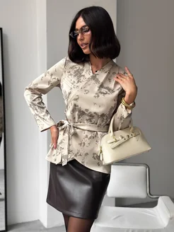 Атласная блузка на запах нарядная