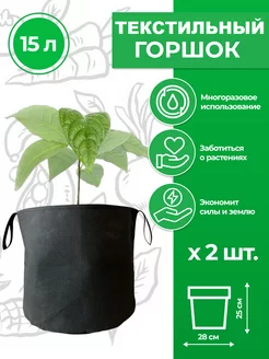 Горшок текстильный для цветов и рассады с ручками 15 л 2 шт