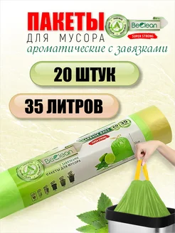 Мусорные пакеты 35 л с завязками и запахом 20 шт ПНД 13 мкм