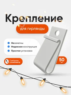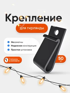 Крепление для уличной гирлянды на дом 50шт с саморезами