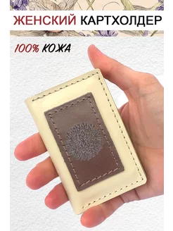 Картхолдер женский для карт натуральная 100% кожа на клепках
