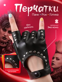 Перчатки без пальцев кожаные из экокожи с заклепками