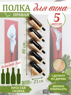 Винная полка Чёрная Настенная на 5 отделений Левый