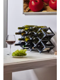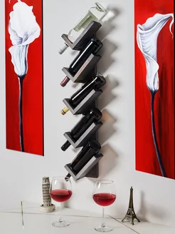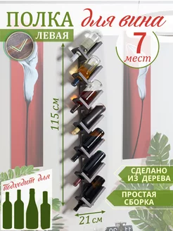 Винная полка Чёрная Настенная на 7 отделений Левый