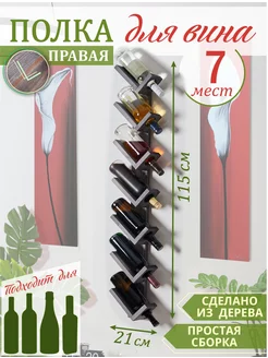 Винная полка Чёрная Настенная на 7 отделений Правый