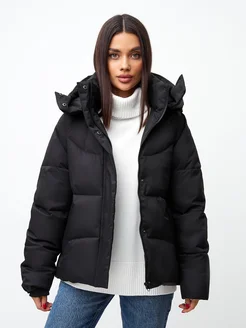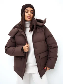 Куртка демисезонная оверсайз короткая с капюшоном