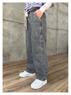 Джинсы на резинке широкие прямые для подростка