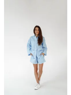 Пижама летний костюм льняной oversize с шортами