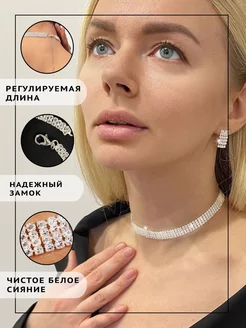 Чокер с кристаллами колье на шею сверкающий на День Святого…