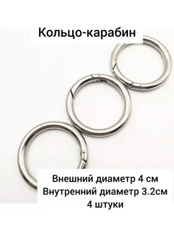 Кольцо-карабин для вязаной сумки, 4 штуки, 4 см