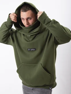 Худи Ворон оверсайз с большим капюшоном и баффом