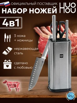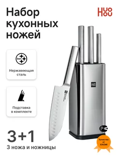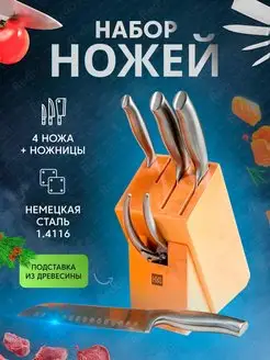 Набор кухонных ножей 4 шт + ножницы и подставка