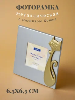 Фоторамка металлическая с магнитом Кошка 6,5х6,5 см