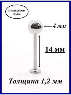 Серьга (1шт) хард-обманка для пирсинга уха, медсталь