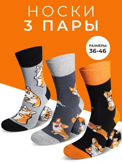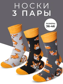 Набор из 3 пар высоких носков унисекс с принтом корги