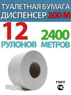 Туалетная бумага для диспенсера 12 рулонов по 200 метров