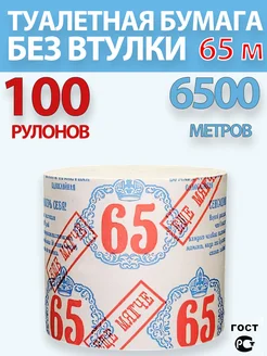 Туалетная бумага без втулки 100 рулонов по 65 метров