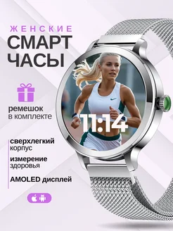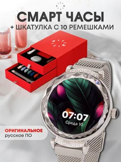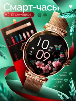 Смарт часы женские для андроид и айфон и 10 ремешков