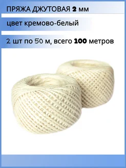 Джут цветной, шпагат джутовый 2 мм, 2 шт по 50 м
